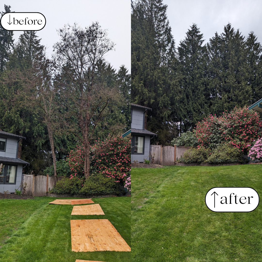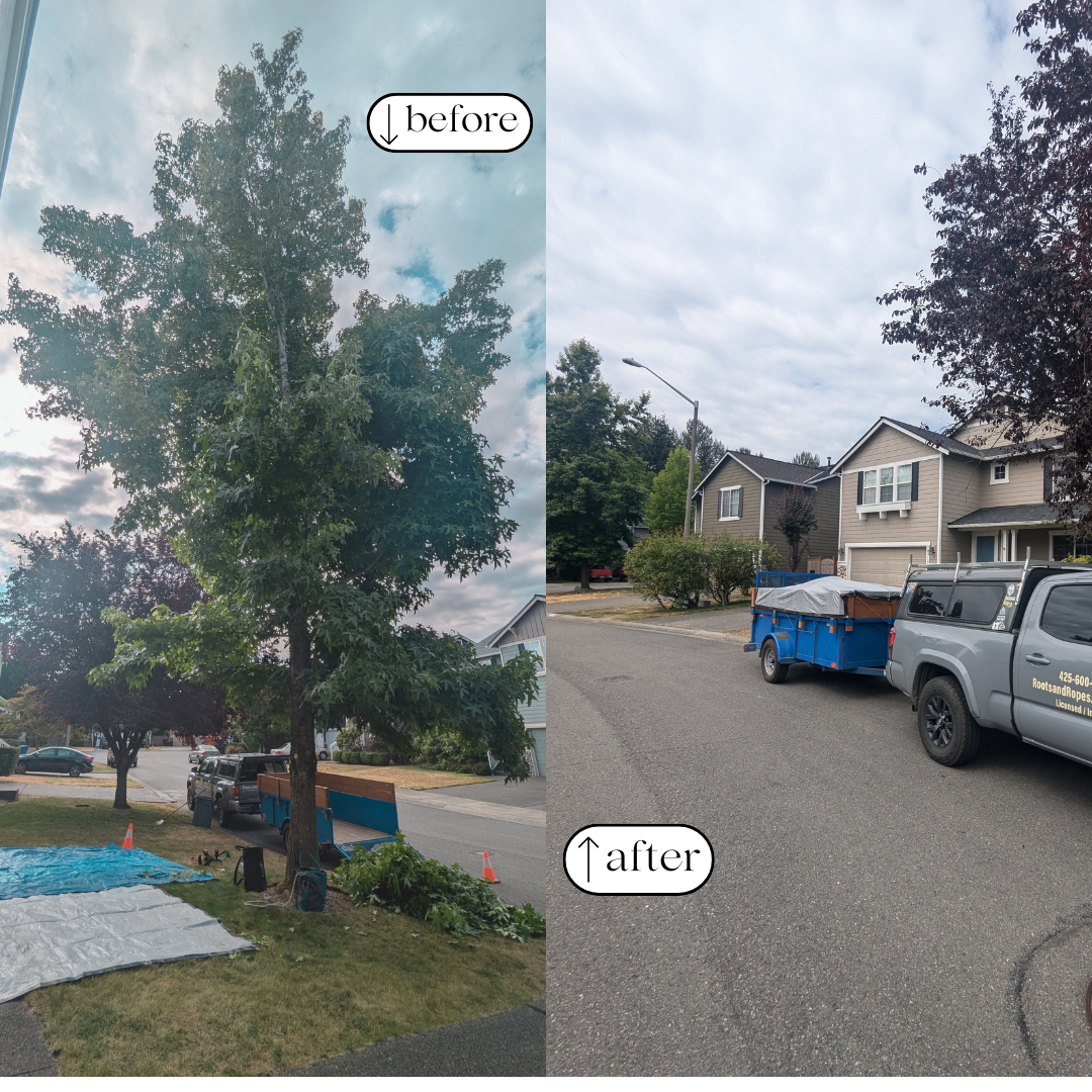 Large ornamental trees that hadn’t been pruned in a while. These pictures make it seem like we found a 3rd tree in the middle!