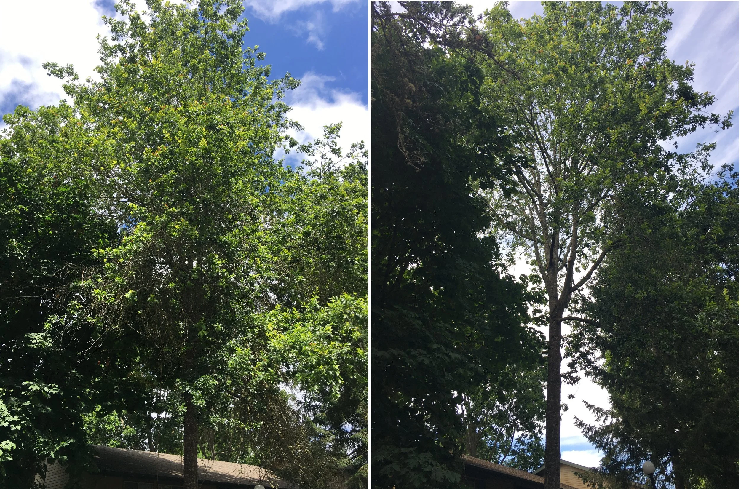 Pin Oak that got a major deadwood prune, look at all the new light that shines through!
